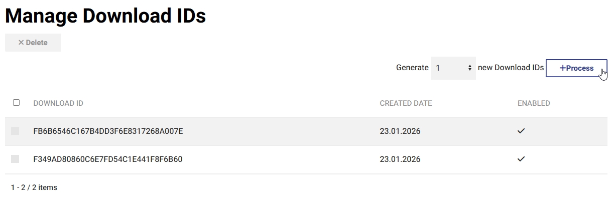 Anmeldung, Download IDs finden