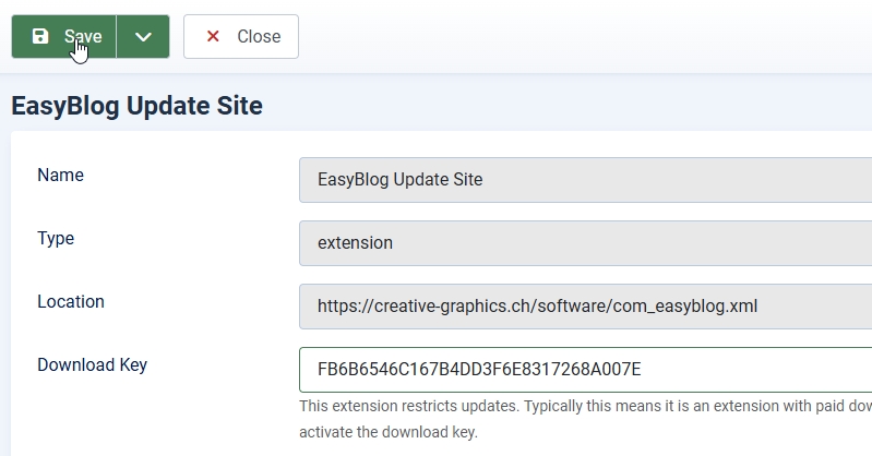 Es ist nun alles bereit für die automatischen Aktualisierungen via Joomla Updater. Es wird immer ein Komplett-Paket ausgeliefert, welches die Komponente, Module, Plugins und Bibliotheken enthält. Es gib nur EINE Update-Quelle für jede unserer adaptierten Komponenten. Alle überflüssigen, alten Quellen werden bei der Installation entfernt. Zusätzliche Sprachen können auf den Software-Seiten oder auf unserem Übersetzungsportal gefunden werden.